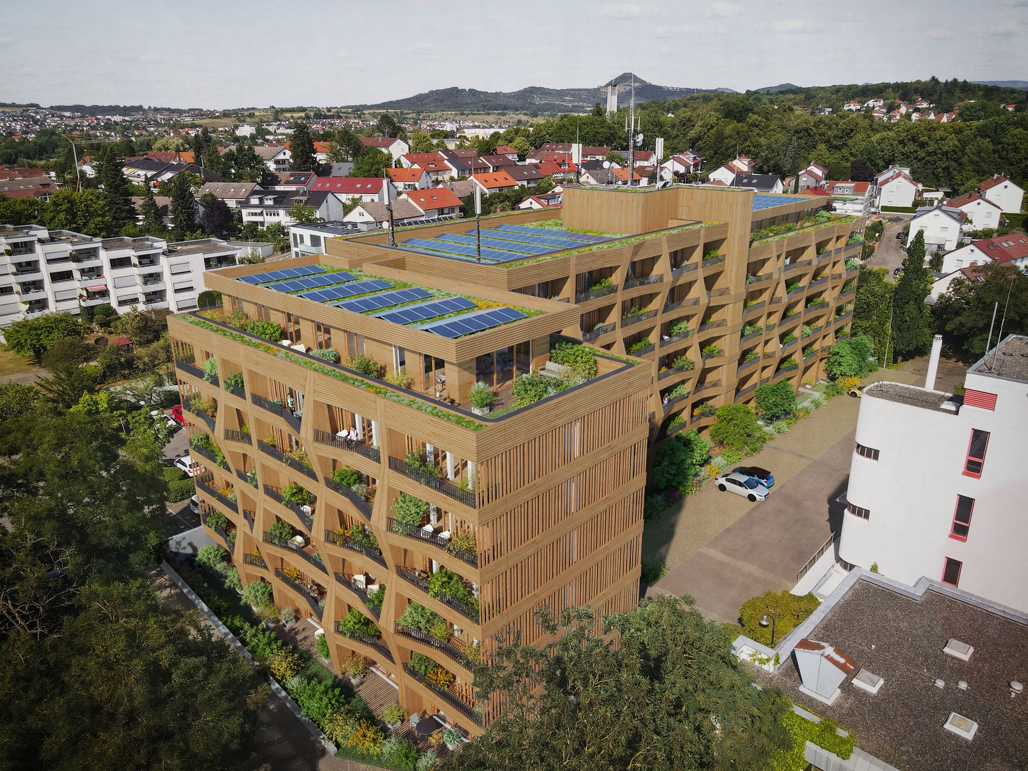 Präsentation von "WoodStock" in Fauerndau 119 Wohneinheiten in Moderner Holzfassade.